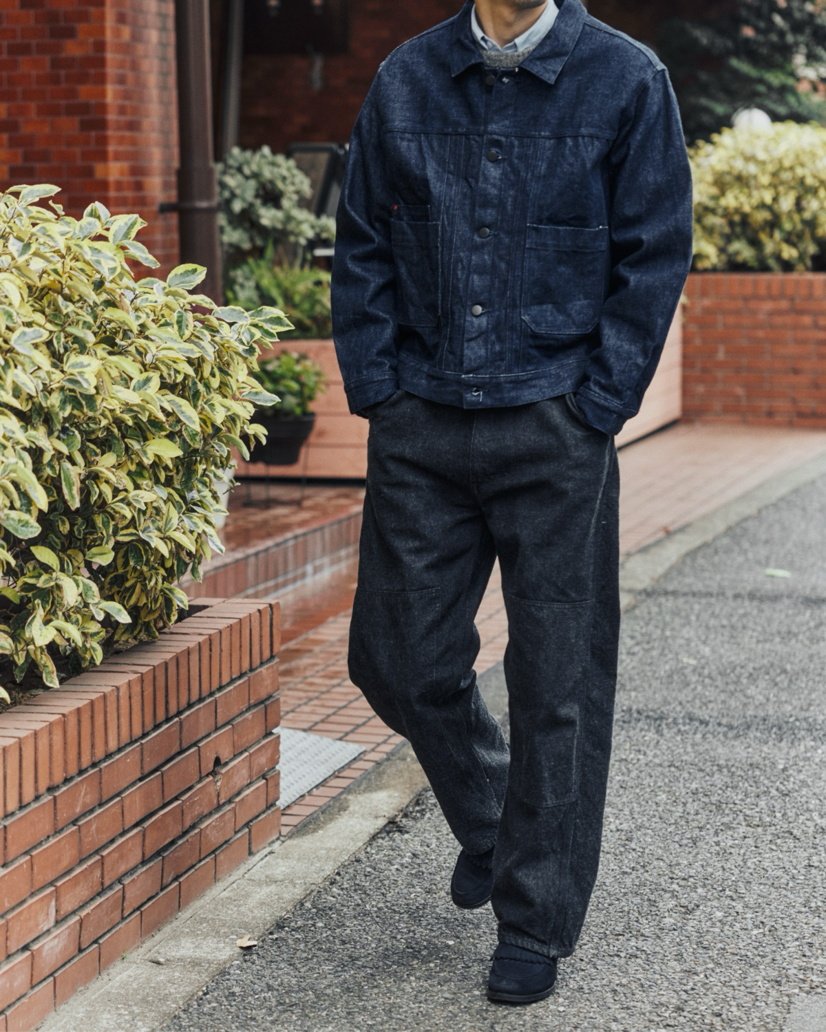 デニムシャツという名称ですが、生地の厚みやディテールから、実際にはカバーオールやデニムジャケットに近い感覚でお使いいただけます。