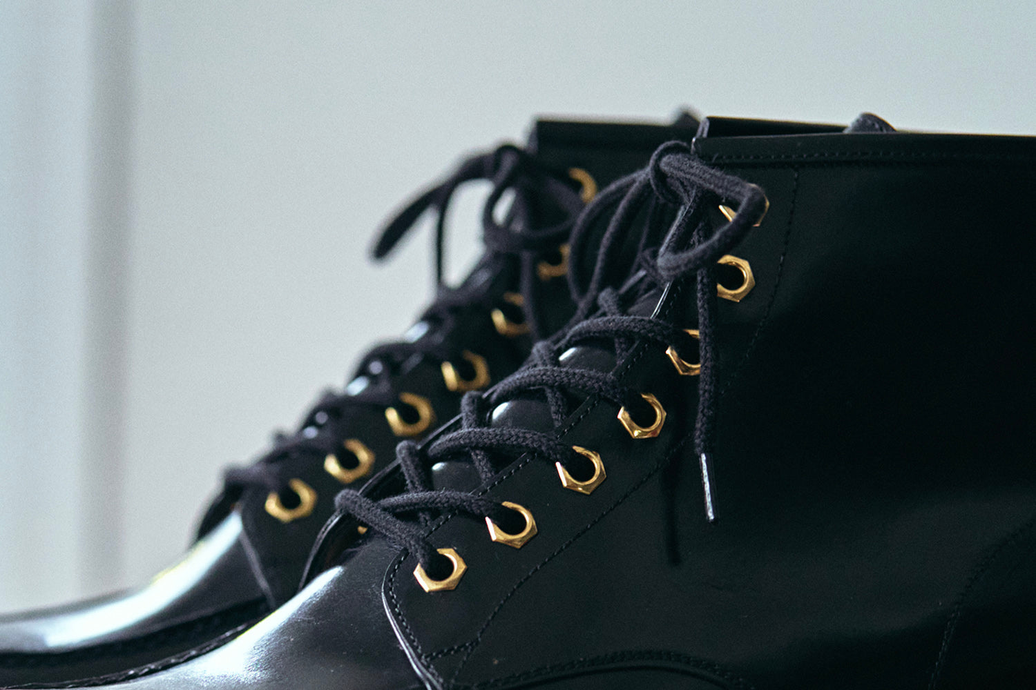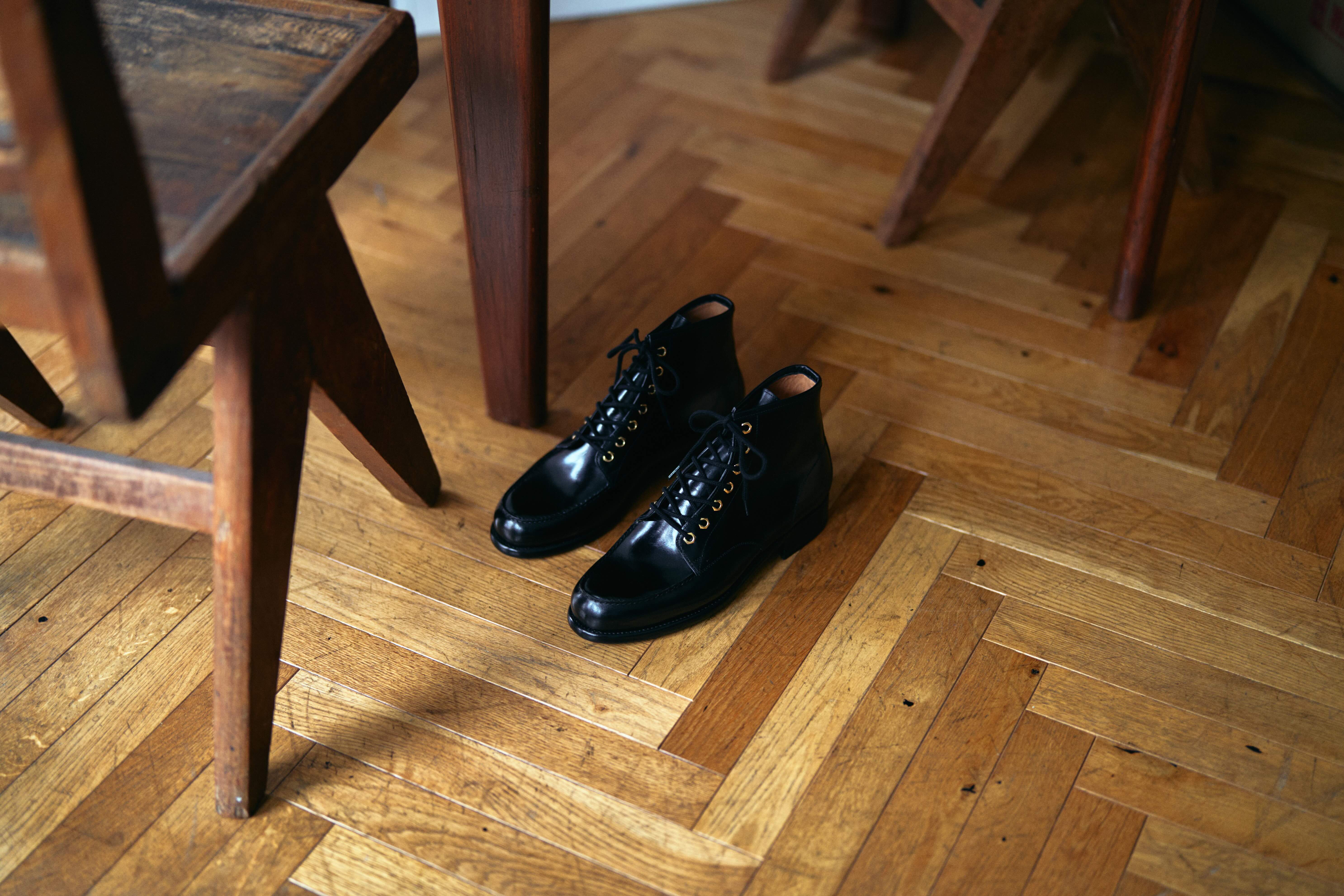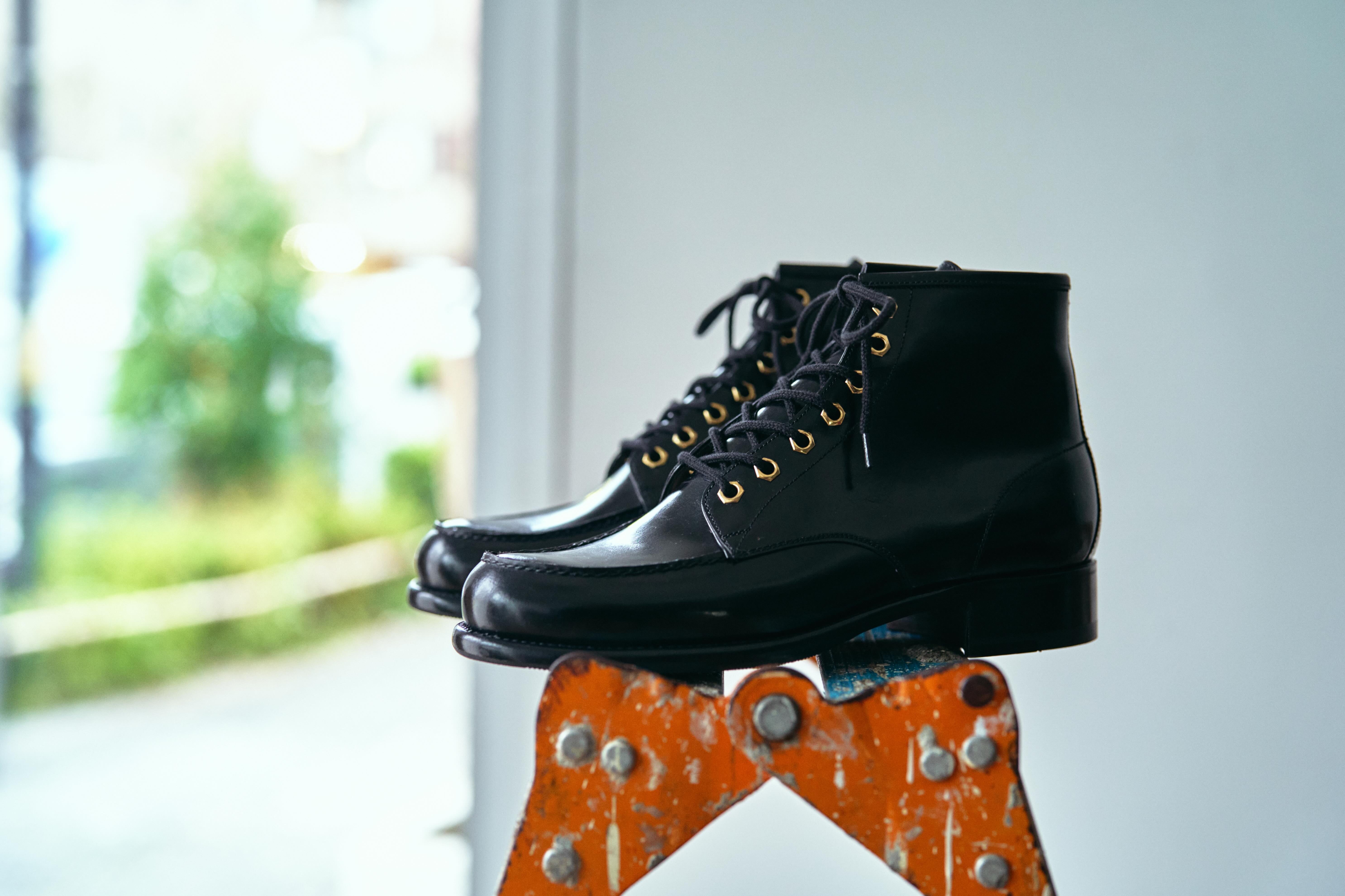 The characteristic point of these boots, which is unique to keylime, is the shiny and heavy black box calf used for the upper.